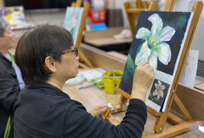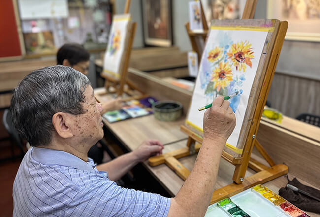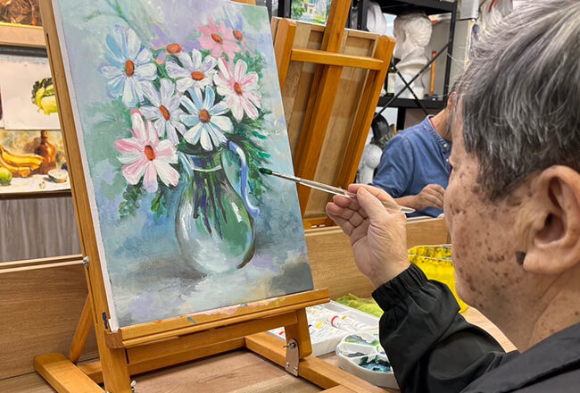 Do you have regrets for not becoming the person you envisioned? Do you want to add vitality and color to your retirement life? Join the senior painting class, where we make friends through art and enjoy the colorful aspects of life.